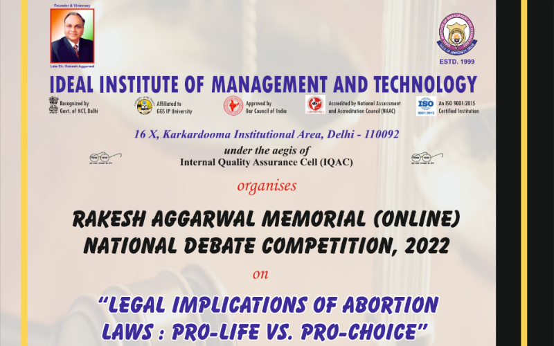 Rakesh Aggarwal Memorial National Debate Competition 2022 (Online) is being organised by Ideal Institute of Management and Technology on 22 September 2022.