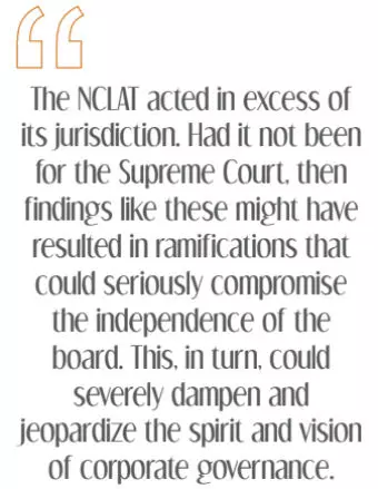 The NCLAT clearly acted in excess of its jurisdiction by rendering the aforementioned finding. Had it not been for the Supreme Court, then findings like these might have resulted in ramifications that could seriously compromise the independence of the board. This, in turn, could severely dampen and jeopardize the spirit and vision of corporate governance in the country.