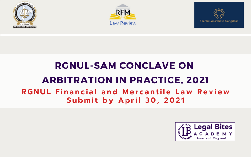 The Editorial Board of RFMLR invites law students to submit research papers under the below mentioned theme to contribute to the discourse around practical issues in arbitration. After preliminarily reviewing all the manuscripts, the Editorial Board will shortlist entries whose authors will be invited to present their research before the experts from SAM & Co. on the day of the Conclave i.e. May 8, 2021.