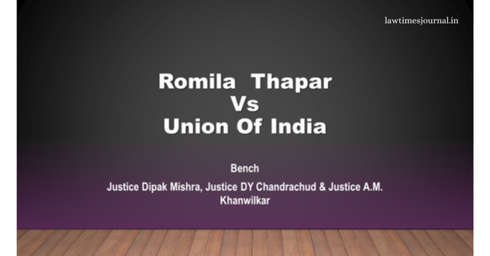 In the Supreme Court of India Writ Petition (Cri.) No. 260 of 2018 Petitioner Romila Thapar, Devaki Jain, Prabhat Patnaik, Satish Deshpande & Maja Dharuwala Respondent Union of India, State of Maharashtra Date of Judgement 28 September, 2018 Bench Justice Dipak Mishra, Justice DY Chandrachud & Justice A.M. Khanwilkar
