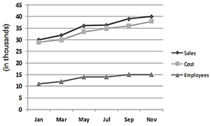 Question 2. In which month is the total increase in the cost highest as compared to two months ago?