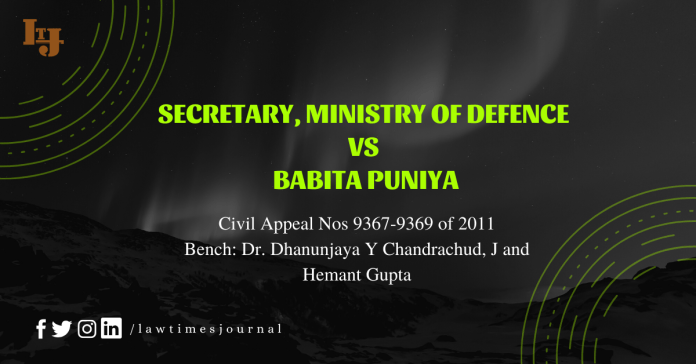 In February 2003, Babita Puniya, an advocate instituted a Writ Petition in the nature of a Public Interest Litigation before the Delhi High Court for the grant of PC to women SSC officers in the Army. Apart from the PIL which was instituted before the High Court of Delhi, a Writ Petition was filed by Major Leena Gurav on 16 October 2006 primarily to challenge the terms and conditions of service imposed by the circulars dated 20 July 2006 and for seeking the grant of PCs for women officers.