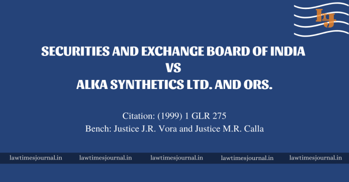 In March, a petition was filed challenging the SEBI notification dated February 15 on which judgment was delivered by a single judge bench on the date May 6, 1996, in which the court directed interim relief to Alka Synthetics. On 4 July 1996 SEBI directed the Bombay Stock Exchange to credit the impounded monies to its Investors Protection Fund. Thereafter on the date July 14, 1996, the petition was amended and the order dated February 15 was challenged on the grounds of being violative of Article 300A of the Constitution of India. On October 17, 1996, SEBI called upon Alka Synthetics to appear before its committee on the question of impounding to which Alka Synthetics made no response and did not turn up on the day on which it was asked to. Therefore, this appeal has been filed before this court against the relief order given by the Single Judge Bench.