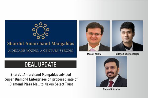 The leading law firm in India, Shardul Amarchand Mangaldas & Co. advised Super Diamond Enterprises and its partners on the proposed sale of 100% shareholding of the entity owning Diamond Plaza Mall in Kolkata to Nexusmalls Whitefield Private Limited, an SPV of Nexus Select Trust.