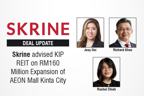 The Malaysian law firm Skrine has advised KIP Real Estate Investment Trust (KIP REIT), through its trustee Pacific Trustees Berhad, in entering into an agreement with AEON CO. (M) BHD for the RM160 million expansion of AEON Mall Kinta City in Ipoh, Perak Darul Ridzuan.