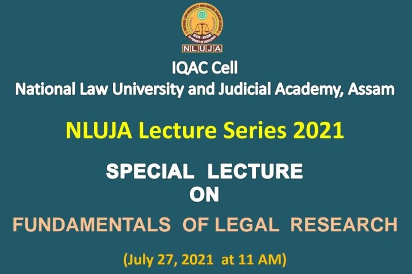 NLU Assam presents Special Lecture on Fundamentals of Legal Research by Prof. (Dr.) R. N. Sharma on 27 July 2021 at 11 AM.