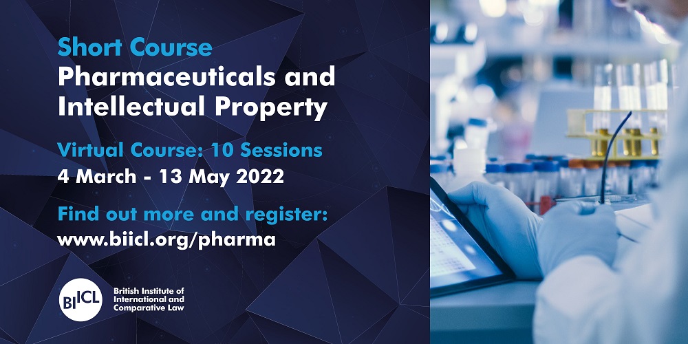 We’re pleased to inform you that The British Institute of International and Comparative Law (BIICL) is offering a short course on ‘Pharmaceuticals and Intellectual Property’ from 4th March 4 to 13th May, 2022. For further details, please see their announcement below.