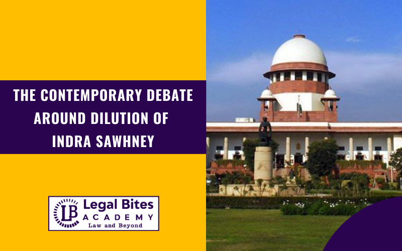 Yet again, last month the same was listed before the Constitution Bench of the Supreme Court to examine, inter alia, whether the 9 judge bench judgement of Indra Sawhney v. Union of India[1] (1992) needs to be referred to a larger bench for reconsideration.