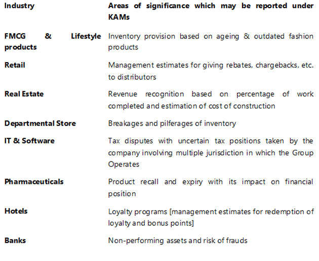 Identification of KAMs is a subjective and predominantly based on auditors judgement. Tabulated below is the summary of reportable KAMs based on the nature of industry.