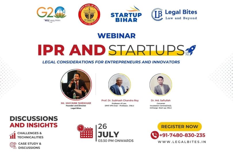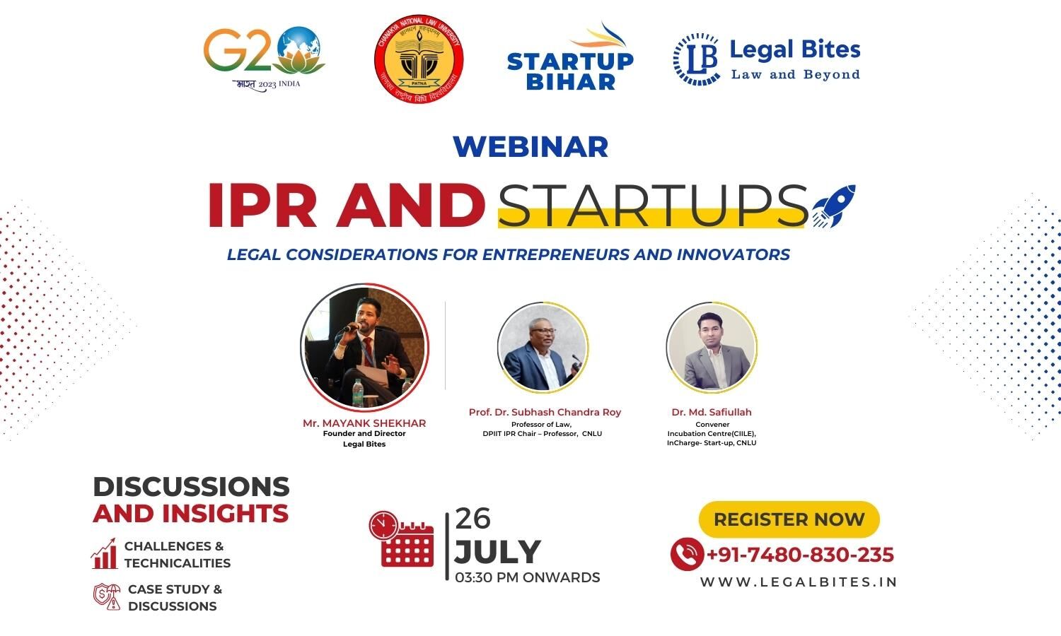 The Centre for Innovation, Incubation and Legal Entrepreneurship (CIILE) and Startup Cell of CNLU, is organising a webinar on “IPR and Startups: Legal Considerations for Entrepreneurs and Innovators” on 26th July 2023. The webinar aims to empower student participants with the knowledge and confidence to successfully protect their innovative ideas and navigate the startup world. By fostering a student-oriented environment for learning and sharing, we aspire to inspire the next generation of young entrepreneurs to embrace their creativity and positively impact the world through their startups.