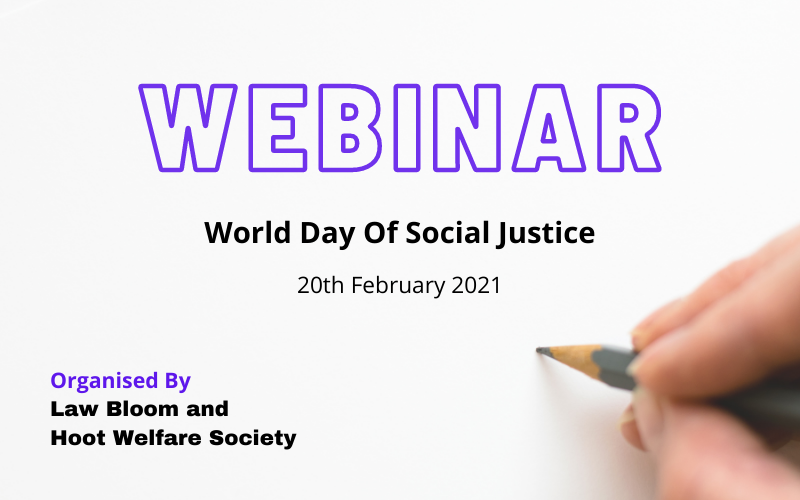 Law Bloom, Hoot Welfare Society is organising a Webinar On “World Day Of Social Justice. The webinar will be held on 20th February 2021.