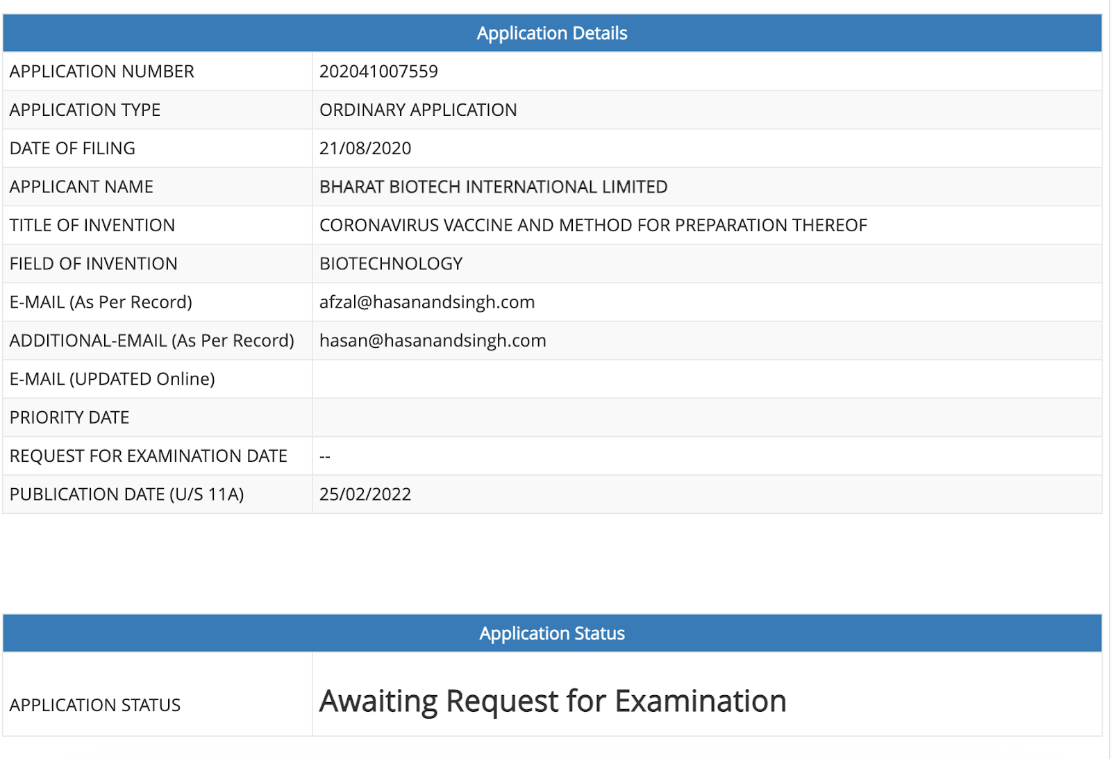 Last weekend, a series of unusual developments regarding the Covaxin patent (Patent Application Number: 202041007559) generated significant buzz. Notably, in The Hindu, Jacob Koshy published back-to-back articles, with the first one appearing on June 22, 2024 (read here (paywalled)). In this article, Koshy reveals that Bharat Biotech (BBIL) filed a patent application for Covaxin without listing the Indian Council of Medical Research (ICMR) as a co-patentee or inventor. This is despite the Health Ministry’s assertion in the Rajya Sabha (pdf) that the intellectual property rights over Covaxin are “jointly owned” by ICMR and BBIL, according to their Memorandum of Understanding (MoU). However, the patent application’s Form 1 (pdf) clearly shows that only Deepak Kumar and Krishna Murthy Ella (Chairman and Founder of BBIL), are named as inventors. From what can be gathered online, it appears that Deepak Kumar was working with the Ella Foundation. This is also indicated as his address in the Form 1. (There doesn’t seem to be any clear information available regarding his affiliation with BBIL or ICMR, so maybe he was working under a contractual relationship?)