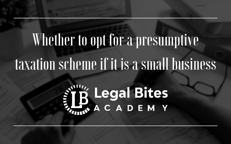 This article titled ‘Whether to opt for a presumptive taxation scheme if it is a small business.’ is written by Mayank Shekhar and discusses the relevance of a presumptive taxation scheme for small businesses.