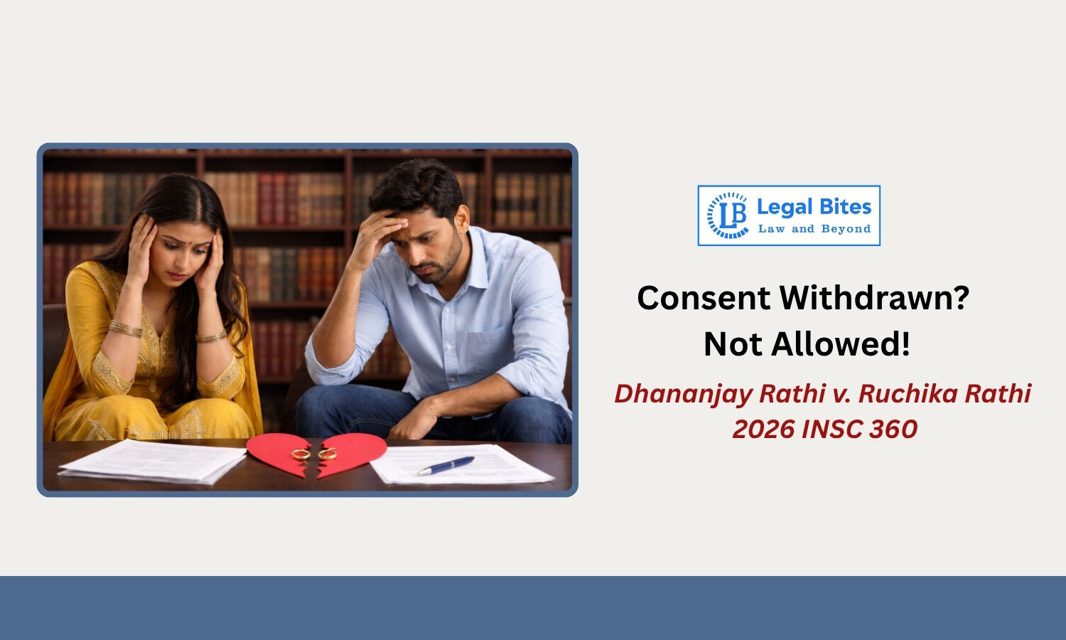 In Dhananjay Rathi v. Ruchika Rathi (2026 INSC 360), the Supreme Court of India addressed this crucial issue and clarified the legal position regarding withdrawal of consent after settlement. The Court held that while consent can ordinarily be withdrawn before the final decree, such withdrawal is impermissible where parties have entered into a binding settlement and acted upon it.