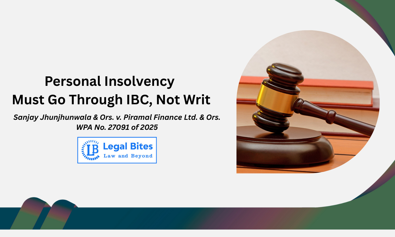 Calcutta High Court’s ruling in Sanjay Jhunjhunwala v. Piramal Finance Ltd. crystallises a critical principle of modern insolvency jurisprudence: Writ petitions cannot be used to quash or stall personal guarantor insolvency proceedings when statutory mechanisms exist for adjudication. The Court rightly held that the petitioners had an adequate remedy before the NCLT, and interference under Article 226 was neither necessary nor legally sustainable.